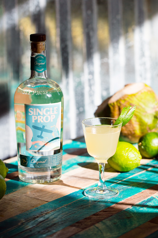 Blend blueberries until smooth and set aside. Combine Single Prop Original, lime juice and blueberries to a shaker, shake until chilled and strain. Pour ice and club soda into a glass and pour in the rum mixture, garnish with fresh mint, extra blueberries and a lime wedge. Don’t forget the reusable straw.